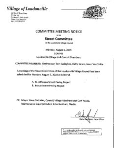 Street Committee meeting notice August 5, 2019